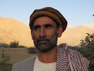 Woke to another beautiful day, more walnut milk and trout! Said fond farewells and walked into the village square to await the drivers. Spent a wonderful half hour talking to the villagers, watching life go by and looking at the incredible scenery. The village mosque is very old and has beautiful carved wooden balconies. Opposite is a tiny shop, also of wood, the typical Afghan double doored, lock up spaces , with no room to stand, and all jammed high with wares. Outside the shop an old man hugs his grandchildren, 5 turbaned men stand by their truck loaded high with potatoes and a farmer walks by with his goat. I could have stayed there happily, but with the arrival of the drivers, all the men of the village came up to us and shook our hands and wished us goodbye and we sped off down the valley.
